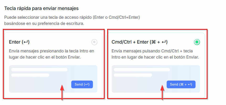 Tecla de envío rápido: Permite definir la tecla o combinación de teclas que utilizarás para enviar mensajes, facilitando una respuesta más ágil en el chat.