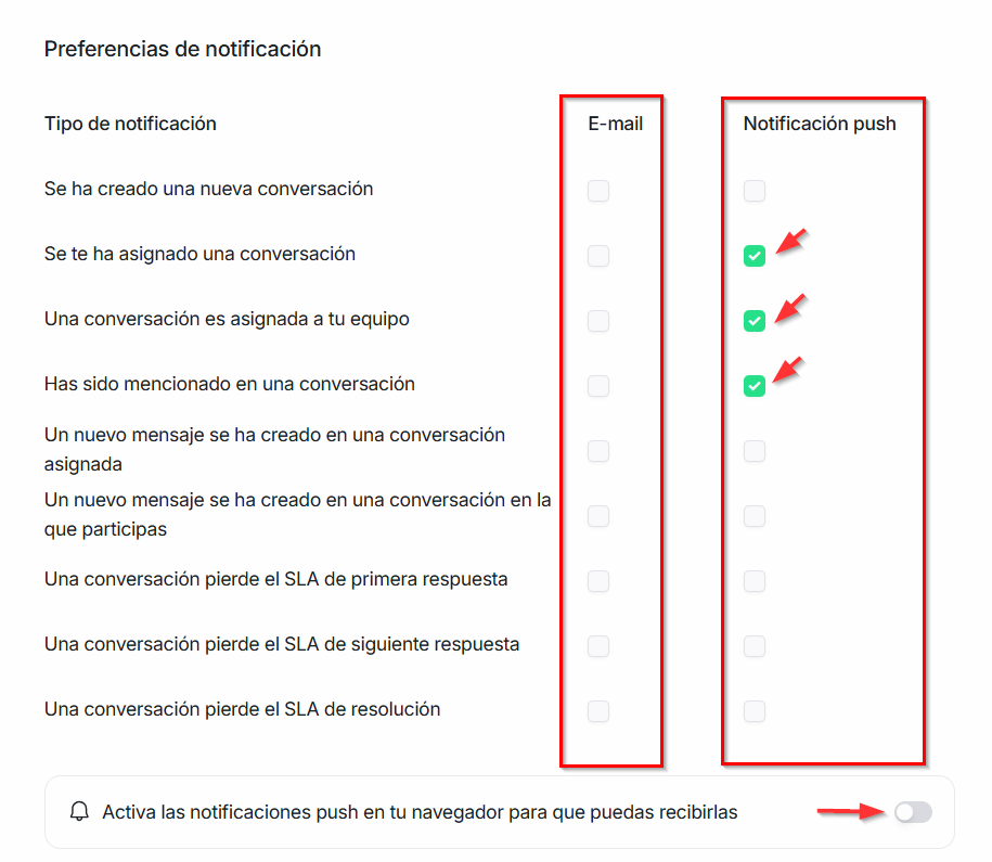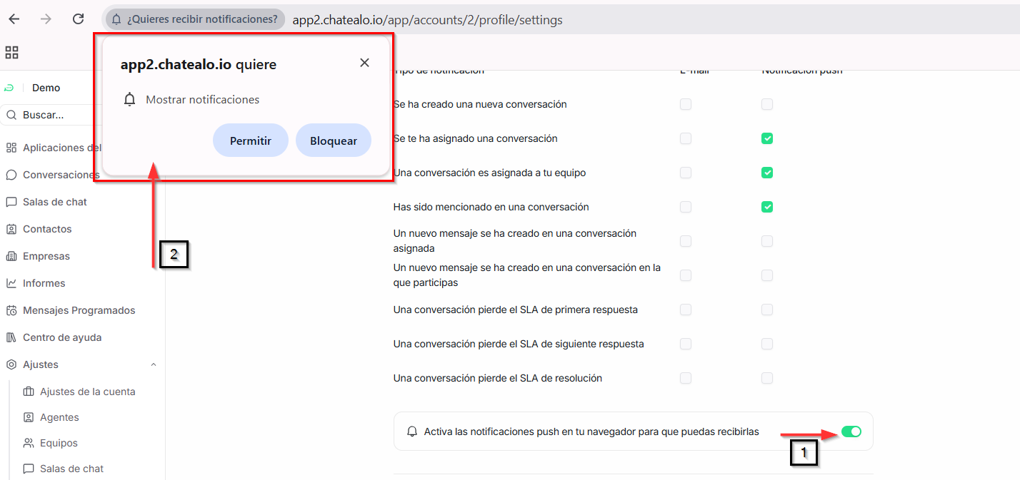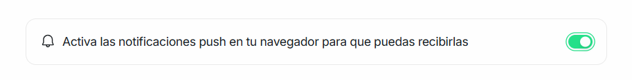Para ello, hacé clic en el botón indicado para Activar las notificaciones push y, cuando el navegador lo solicite, seleccioná Permitir para activar las notificaciones.