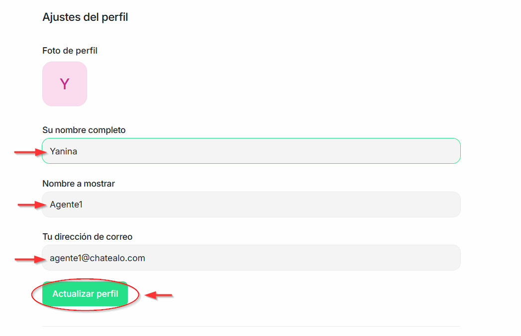 Esta sección le ayudara a actualizar su perfil de agente en Chatealo.