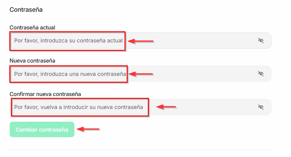 Contraseña: Aquí podrás actualizar tu contraseña de acceso.