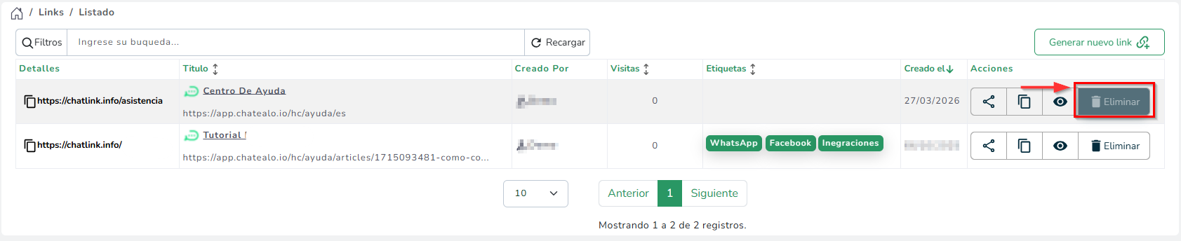 → Eliminar tus links creados que ya no deseas utilizar.