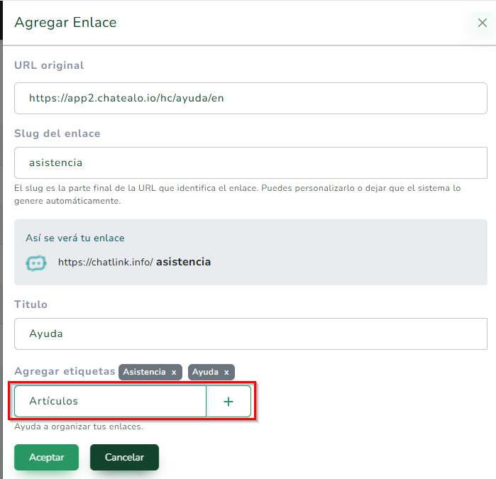 Podés agregar etiquetas cargandolas en → Agregar etiquetas, para organizar tus links: